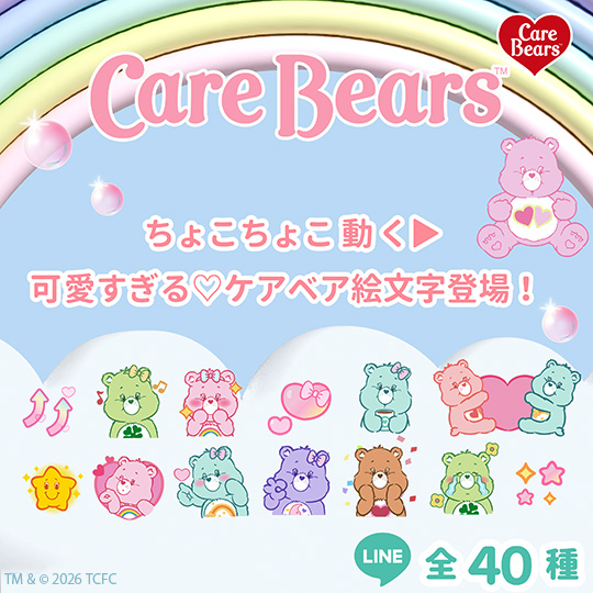 ちょこちょこ動く♪かわいすぎる「ケアベア™絵文字」が登場!