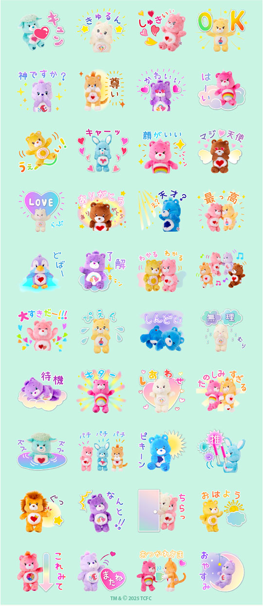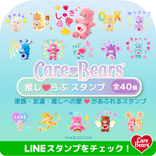 推し活はもちろん、家族や友人など大切な人へのメッセージにもぴったり。 ふだんはちょっと照れくさい「ありがとう」や「大好き」の気持ちも、ケアベアたちがやさしく届けてくれます。