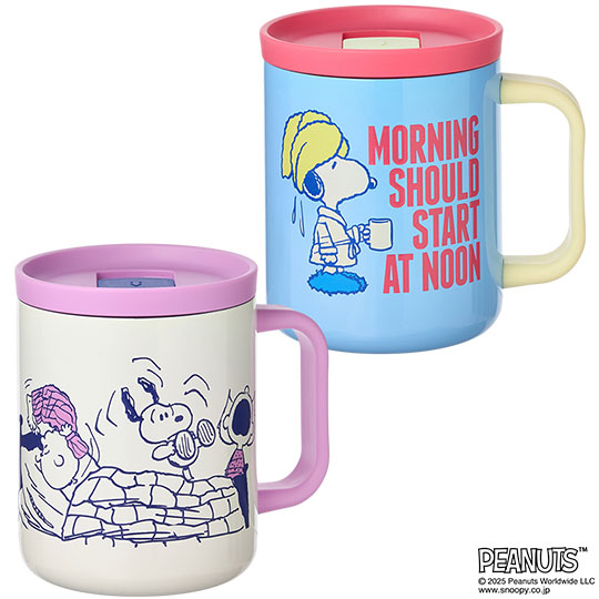 PEANUTS 蓋つきステンレスマグ アイボリー/ブルー 各¥3,300(税込)