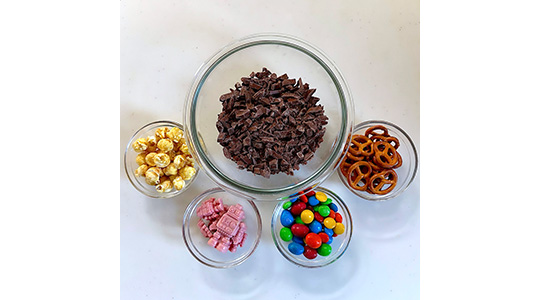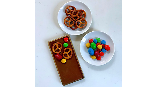 テンパリングしたチョコレートを型に流し込み、お好みの材料をトッピングするだけ♪とっても簡単なので、ぜひ作ってみてくださいね!