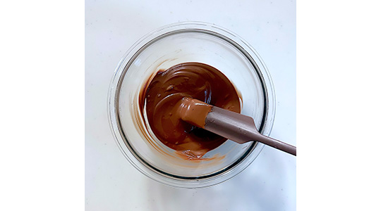 ★よりきれいな仕上がりにしたい場合は、テンパリングがおすすめです。チョコレートを湯せんにかけ45℃まで温めたら、ボウルを冷水につけ28℃まで冷やします。その後、再び湯せんにかけて30℃まで温度を上げてください。
