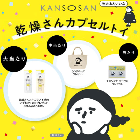 期間中「乾燥さん」シリーズの商品をお買い上げで、素敵なプレゼントが当たるカプセルトイイベントにご参加いただけます。