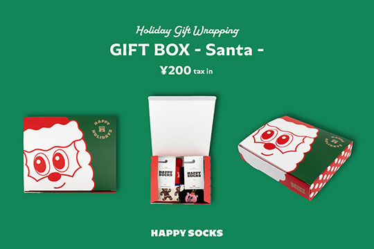 また、サンタ柄の素敵な有料ギフトボックス¥200(2足用)もご用意しておりますので、ご希望の方はレジスタッフにお申し付けください。
