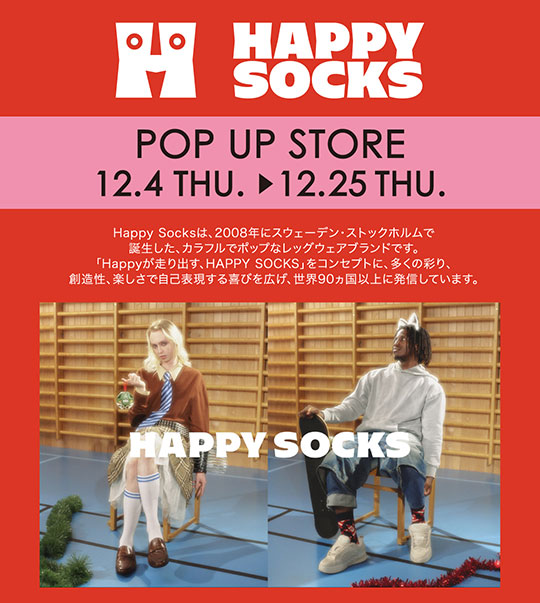 PLAZA NEWSSTAND 赤坂店では12/4(木)~12/25(木)の期間限定で、ハッピー&ホリデー気分になれる「HAPPY SOCKS(ハッピーソックス)」のPOP UP イベントを開催いたします。