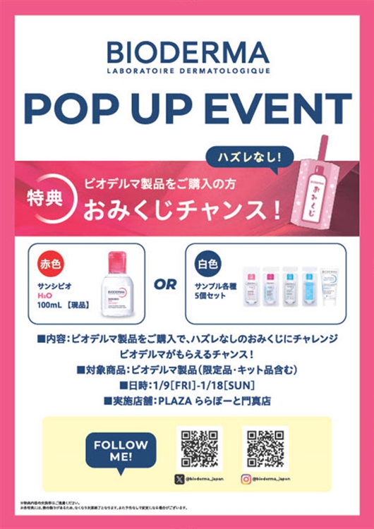 PLAZA ららぽーと門真店では1/9(金)~1/18(日)の期間、「BIODERMA(ビオデルマ)」のPOP UP イベントを開催いたします!