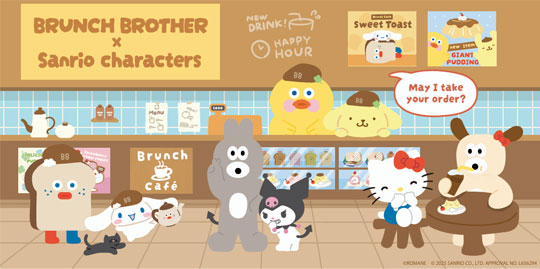 ブランチブラザーたちが集まる「ブレッディビレッジ」で話題のブランチカフェ。カフェ店員として働く大忙しのブランチブラザーたちをサンリオのキャラクターたちがお手伝いしてくれています!