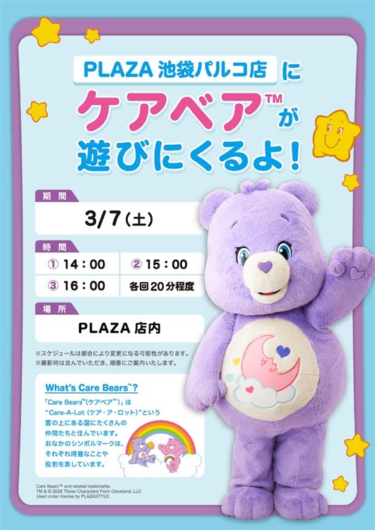 3/7(土)、PLAZA 池袋パルコ店に大人気の「ケアベア™」が遊びに来てくれます♪