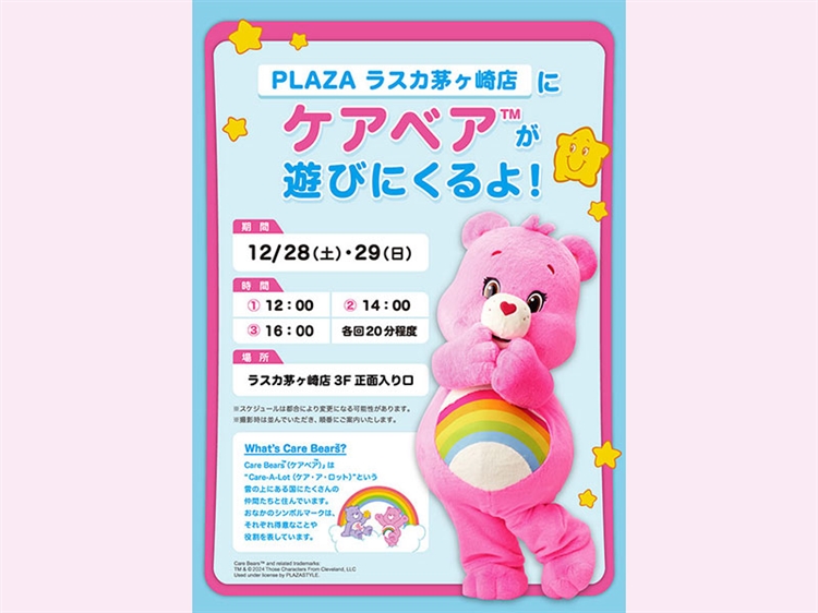 PLAZA ラスカ茅ヶ崎店に「ケアベア™」が遊びに来るよ!12/28(土)・12/29(日)の2日間開催