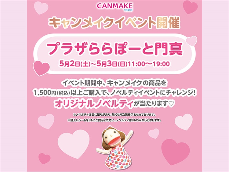 「CANMAKE(キャンメイク)」5/2(土)・5/3(日) ノベルティキャンペーン開催のお知らせ