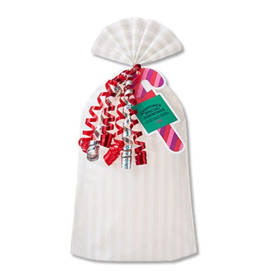 いつも無料のPLAZAのギフトラッピングですが、ホリデーシーズンはキャンディケーンモチーフのペーパータグがついた、限定カラーのカールリボンをお選びいただけます。