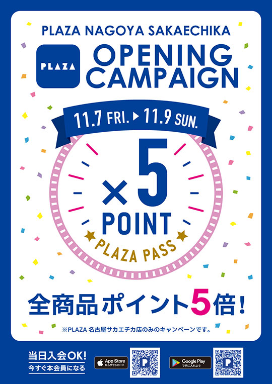 PLAZA 名古屋サカエチカ店 11/7(金)オープンのお知らせ