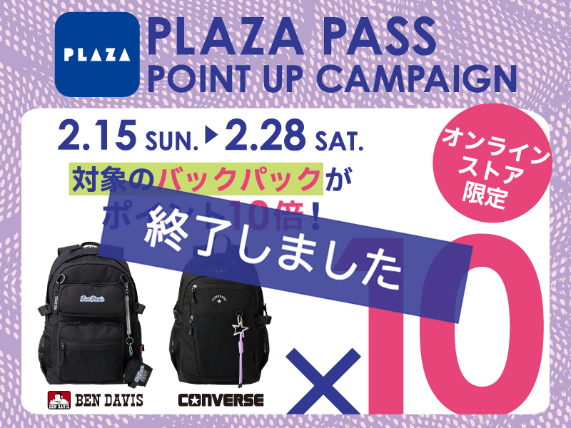 オンラインストア限定で、対象アイテムのPLAZA PASS ポイントが10倍になる「ポイントアップキャンペーン」を実施します。