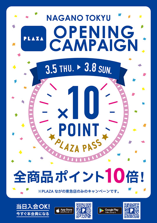 PLAZA ながの東急店 3/5(木)オープンのお知らせ