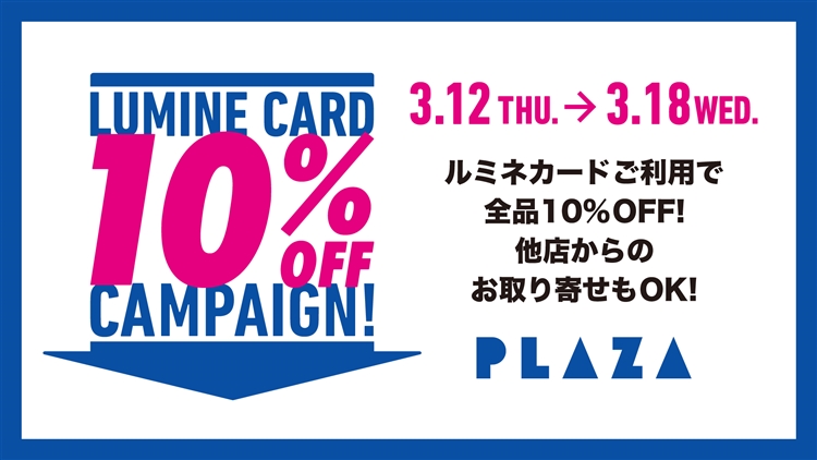 3/12(木)~3/18(水) ルミネ10%OFF & PLAZA PASSポイント5倍!