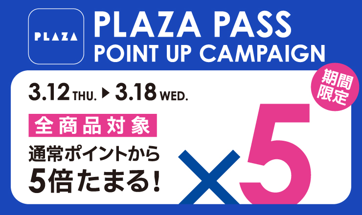 - ※ポイント5倍はPLAZA PASS 本会員のみ対象です。