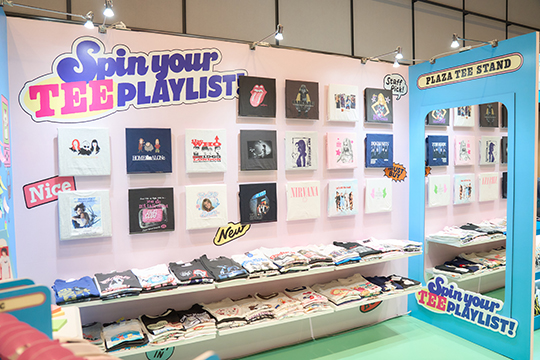 4/3(金)よりスタートするTシャツプロモーションのブースには、人気海外アーティストのCDジャケットや名作映画のワンシーンなど、PLAZA限定のデザインTシャツがずらり。好きなタイトルへの想いを書いてシェアできる参加型スペースも♪