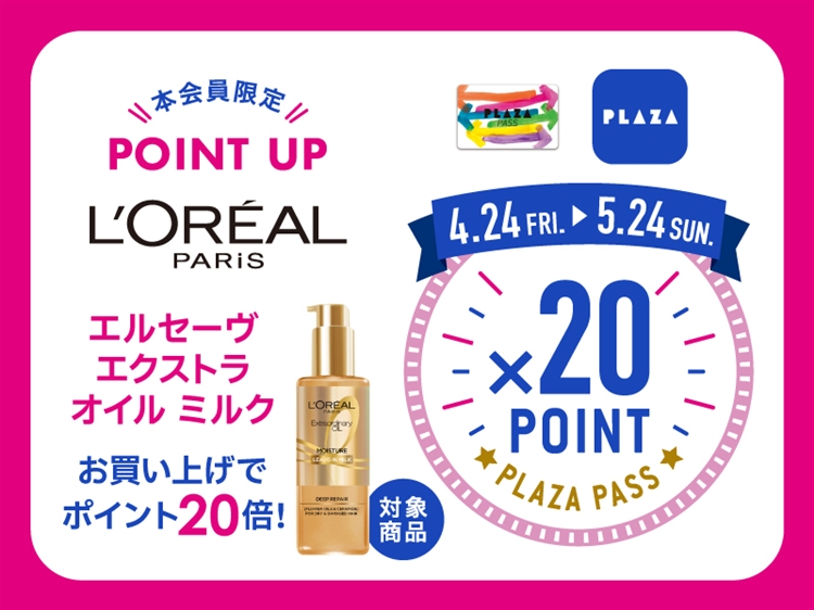 4/24(金)~5/24(日)PLAZA PASS 本会員様限定『ロレアルパリ 』ポイントアップキャンペーン!