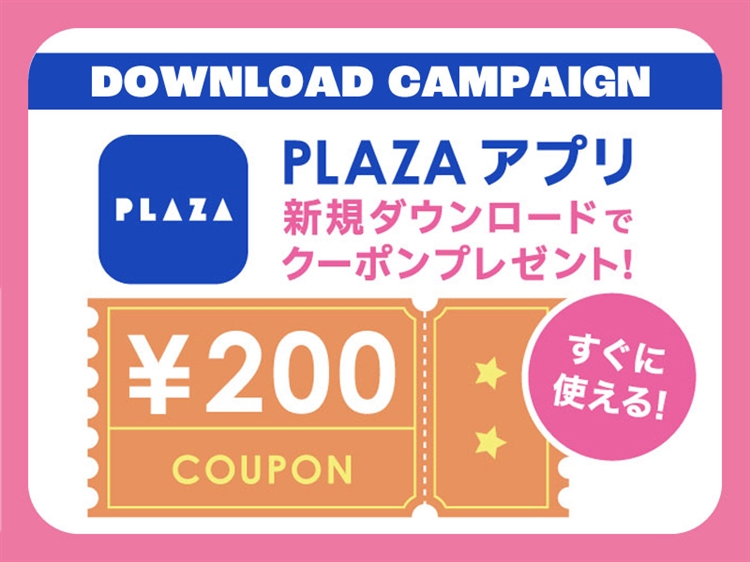 NEW 2026.05.01 PLAZA BGM【2026.5.1-2026.5.31】 NEW キャンペーン 2026.05.01 5/1(金)~5/14(木)【PLAZAアプリ】新規ダウンロードで「¥200クーポン」プレゼント!