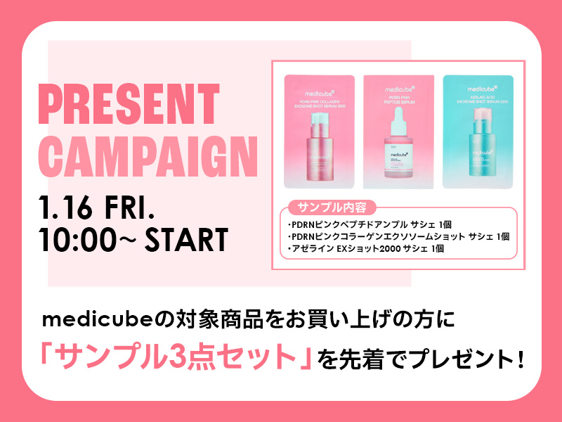 medicubeの対象商品をお買い上げ先着で「サンプル3種セット」をプレゼント!
