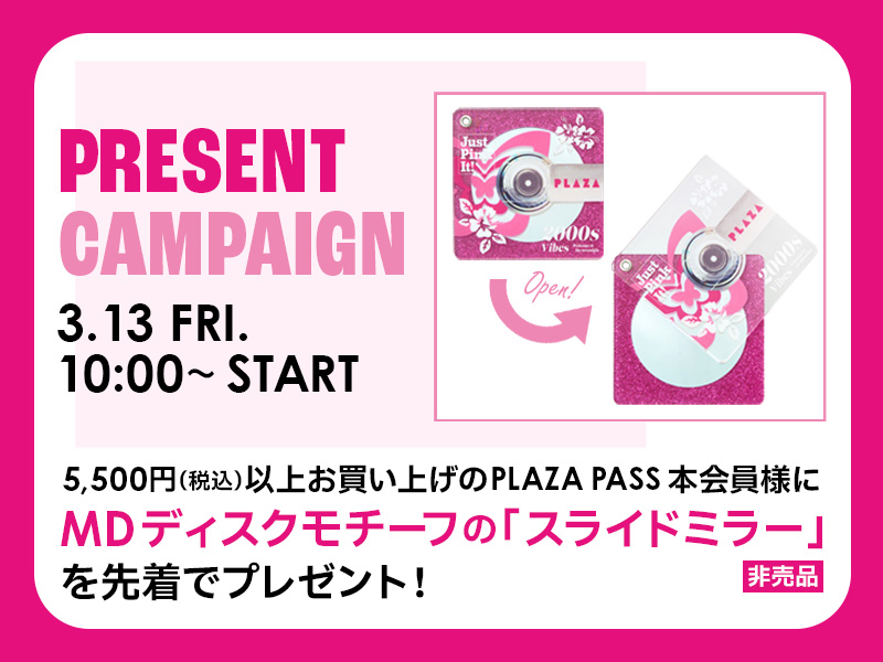・配布条件:PLAZA PASS本会員様限定です。事前にログインをお願いいたします。ログインをせず、お買い物時に新規会員登録をされた場合は対象外となります。