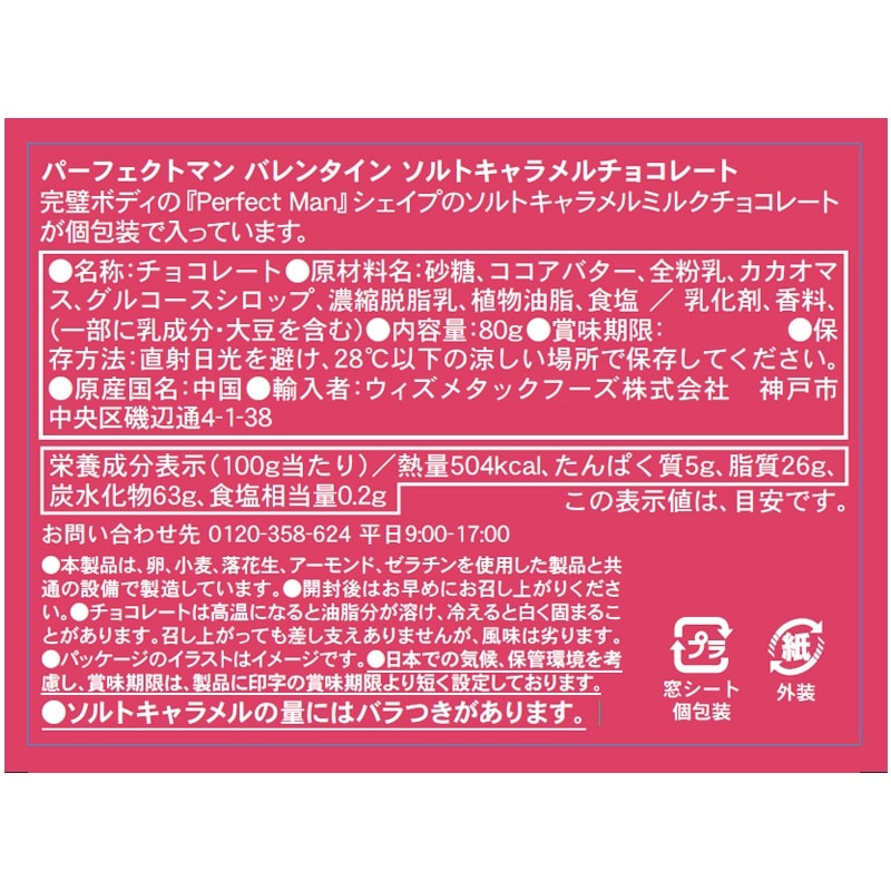 毎年人気のパーフェクトボディな「Perfect Man」から、ソルトキャラメル チョコレートがラインアップ。 パッケージもハートがちりばめられていてキュート!個包装入りなのでシェアにもおすすめです。