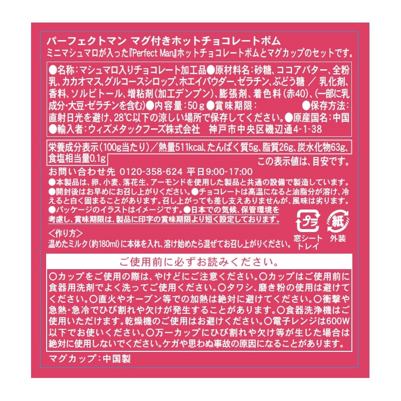 パーフェクトボディの男性がハート柄のパンツをはいた姿が可愛いチョコレート「パーフェクトマン」のチョコレート。中にミニマシュマロが入ったチョコレートボムと、マグカップのセットです。ホットミルクに入れると溶けてマシュマロが出てきます。ギフトにもおすすめ!
