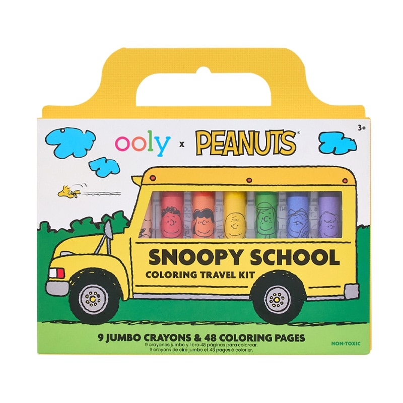 トラディショナルでお洒落なアメリカの文房具の「OOLY(ウーリー)」とPEANUTSのコラボアイテム。9本のジャンボクレヨンと48ページのピーナッツのぬり絵がセットになった、持ち運びに便利なぬり絵キットです。