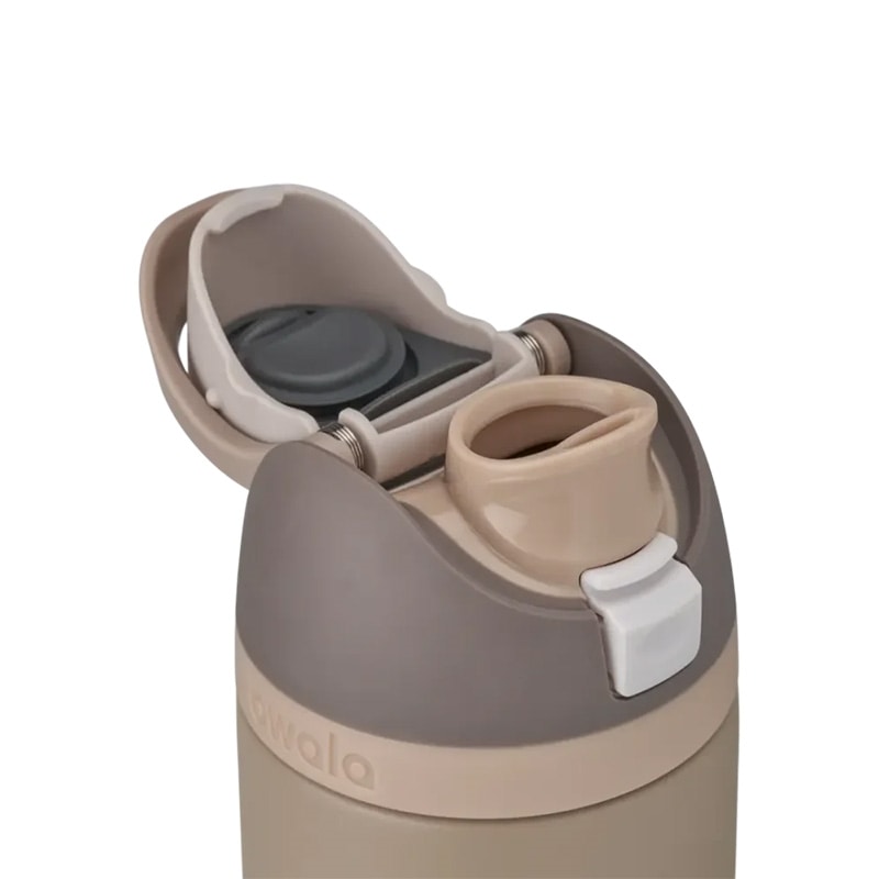 「owala(オワラ)」は2020年にアメリカで誕生したウォーターボトルブランド。ボトルを立てたままなら内蔵ストローでひと口、傾ければワイドマウスからゴクゴク飲めます。さらに、このボトルはいつでもアクティブに使える設計。ボタンを押すだけでフタが開き、閉めるとしっかりロック。衛生面にも配慮した構造です。FreeSipは、完全漏れ防止設計なので、バッグの中に入れても安心して持ち運べます。