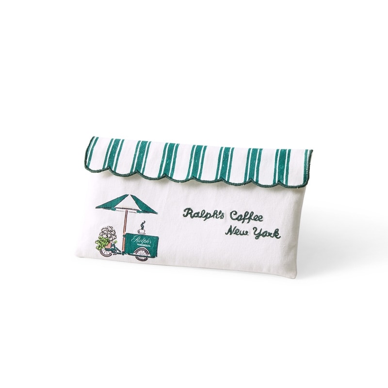 Ralph's Coffeeのトラックとシグネチャーのロゴをチャーミングに表現する刺繍を施したコットンジップポーチ。