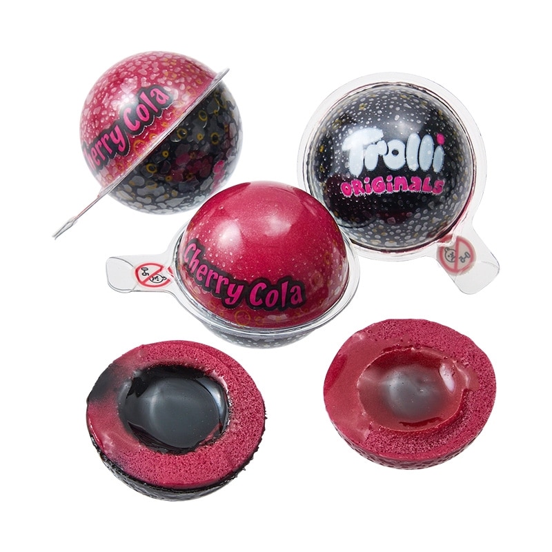 トローリの3Dグミシリーズから、「フレーバーボム」がラインアップ。 アメリカで人気のドリンク、"チェリーコーラ"をイメージしたフレーバーです。 中からチェリーコーラフレーバーの酸っぱいソースが弾ける、食べて楽しい新食感のグミ。 カラフルでポップな見た目とおいしさを兼ね備えた、気分が上がるアイテムです。