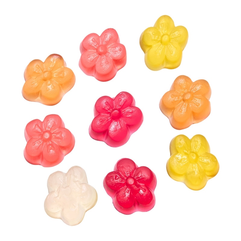 HARIBOからハッピースプリングがラインアップ! サクラモチーフのグミで、パイナップル、レモン、ラズベリー、オレンジ、イチゴの5種類のフレーバーを楽しめます。