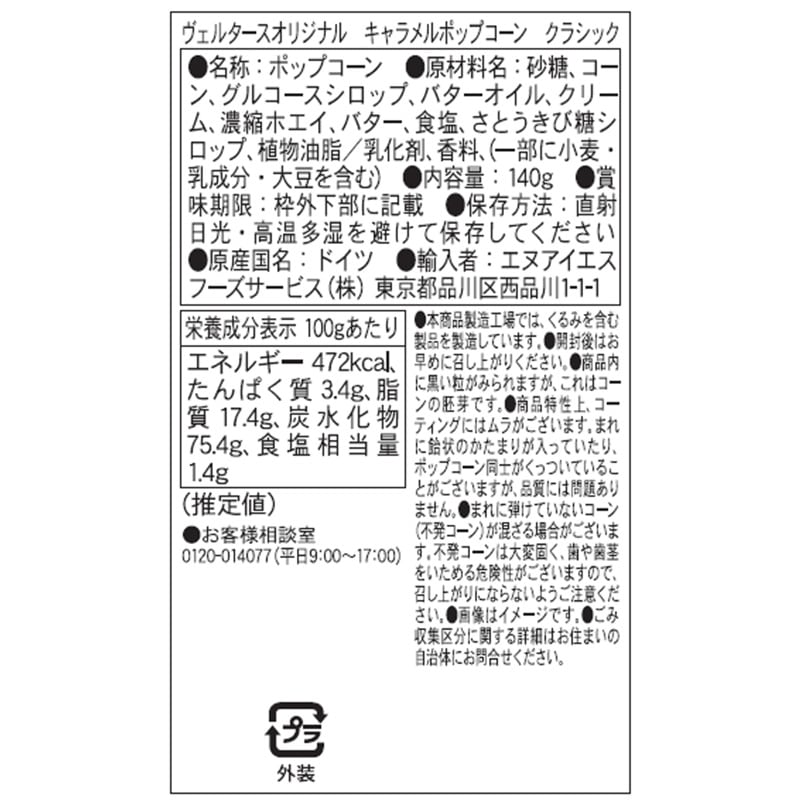 ●商品特性上、コーティングにはムラがございます。まれに飴状のかたまりが入っていたり、ポップコーン同士がくっついていることがございますが、品質には問題ありません。