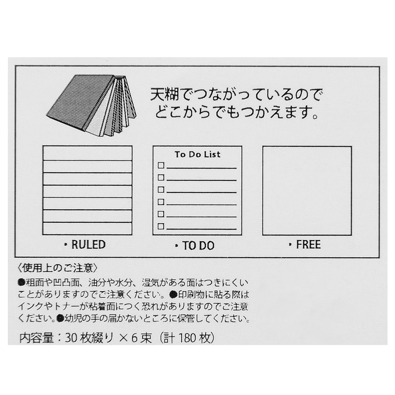 ノートやダイアリーに貼り付けて使える、スクエアタイプの付箋セットです。中身はメモに便利な横罫線、イラストなども描きやすい無地、その日にやることを書き出せるTo Do Listの3種類。天糊でつながっているのでバラバラにならず、好きなところから使えます。ロゴがおしゃれなクリアケース入りで最後まで綺麗に保存できるのもポイント。たっぷり使える180枚入り。PLAZA限定アイテムです!