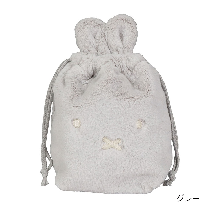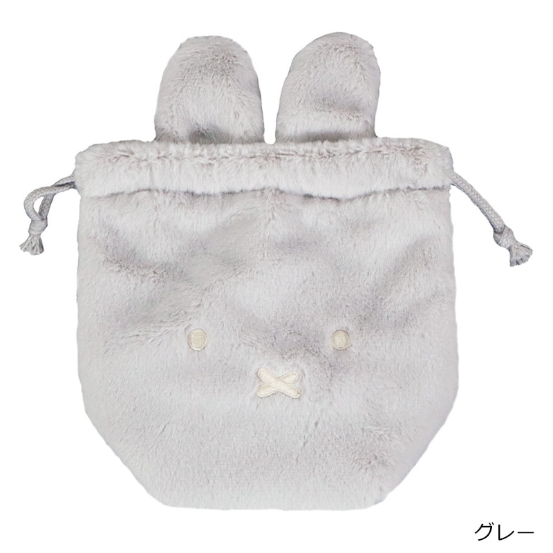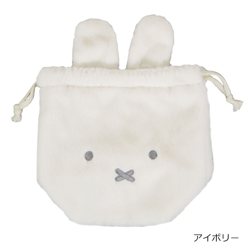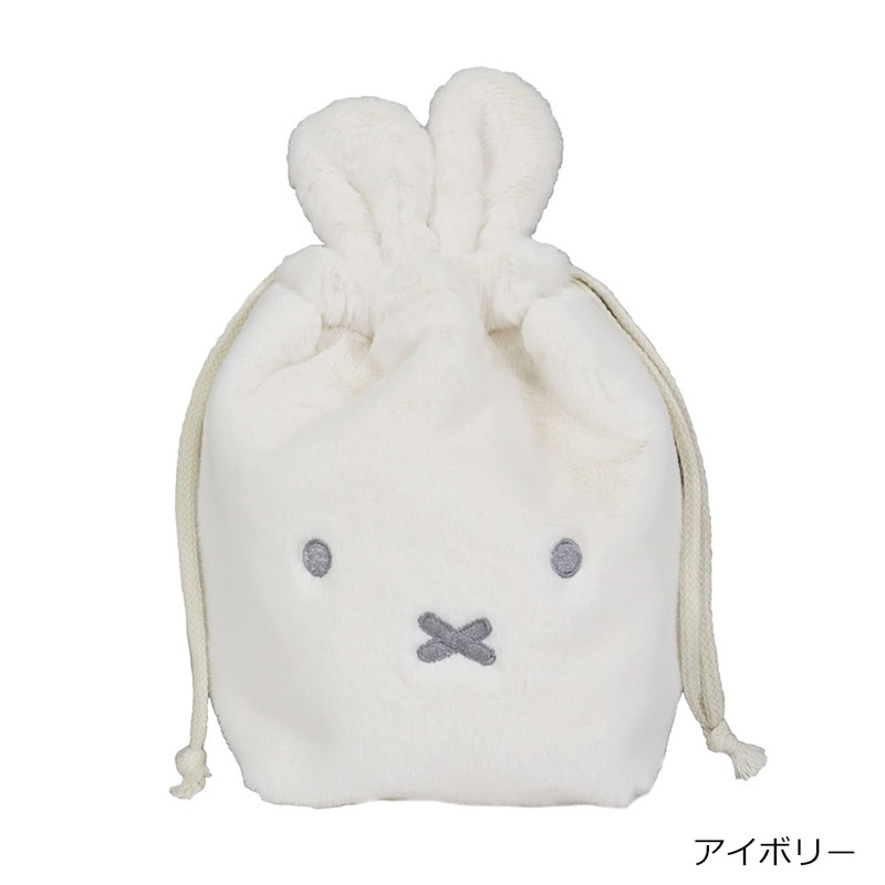 ミッフィーのフェイスデザインがキュートな巾着です。ハンカチ、コスメ、エチケット用品などバッグの中で小物を整理して収納するのにぴったりなサイズ感。紐をキュッと絞ると、ミッフィーの形に。ふわふわな肌触りで持っているだけで癒されるアイテムです。