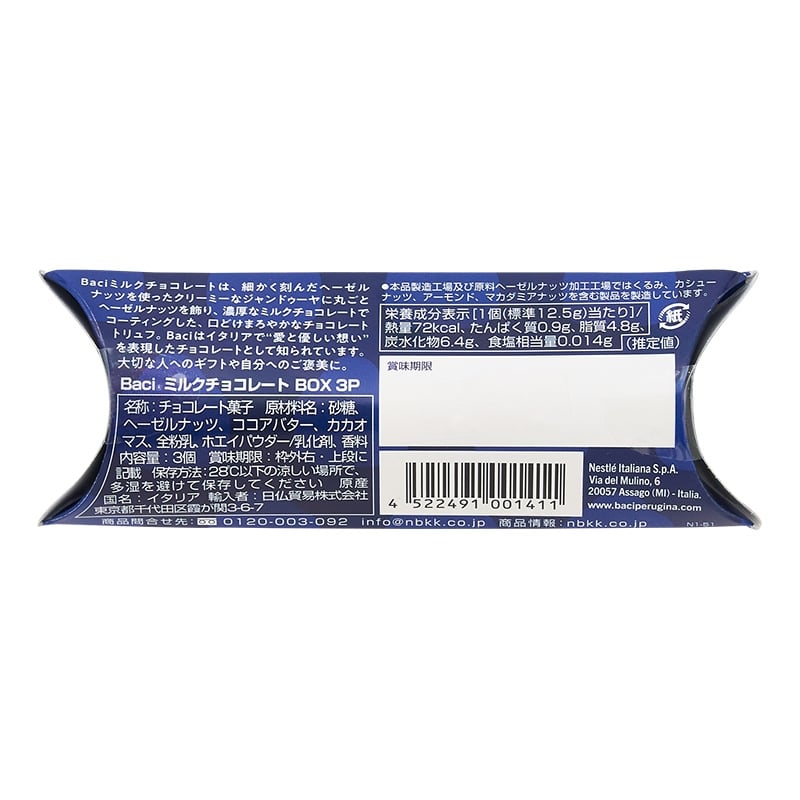 コロンとしたシルエットが可愛い♪ イタリアの贈り物としても人気の「バッチ」のチョコレートが届きました。 濃厚なミルクチョコレートで、ジャンドゥーヤ(焙煎したナッツがたっぷり入ったペースト)とヘーゼルナッツを一粒丸ごとコーティング。ナッツの香ばしさが堪能できる贅沢なチョコレートです。3個入り。
