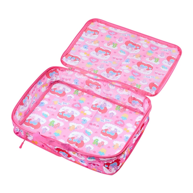 ケアベア™ の衣類を圧縮できるケース。ファスナーを閉めるだけで、衣類が圧縮できるので、面倒な旅のパッキングの味方になること間違いなしです!