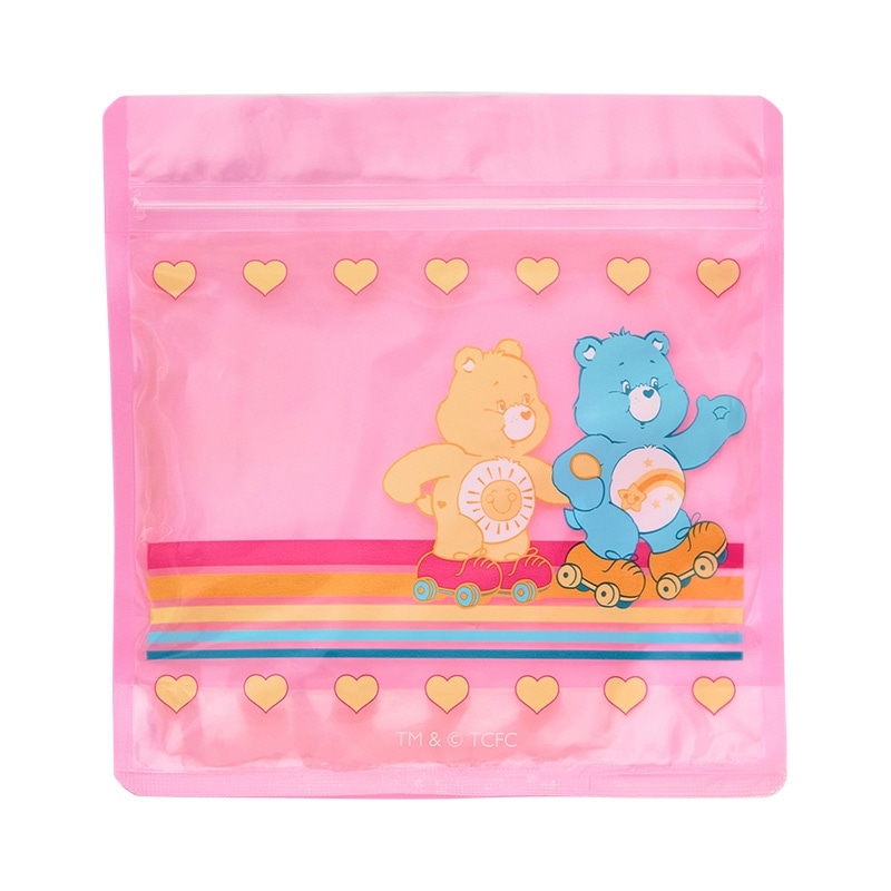 仲良くローラースケートをする「Care Bears™(ケアベア™)」がとってもキュートな保冷袋です。ジッパーバッグと保冷剤がひとつになっていて、溶けやすいお菓子などの持ち運びに最適◎。ジップ付きなので、中身がバッグの中で散らばらないのも嬉しいポイント。