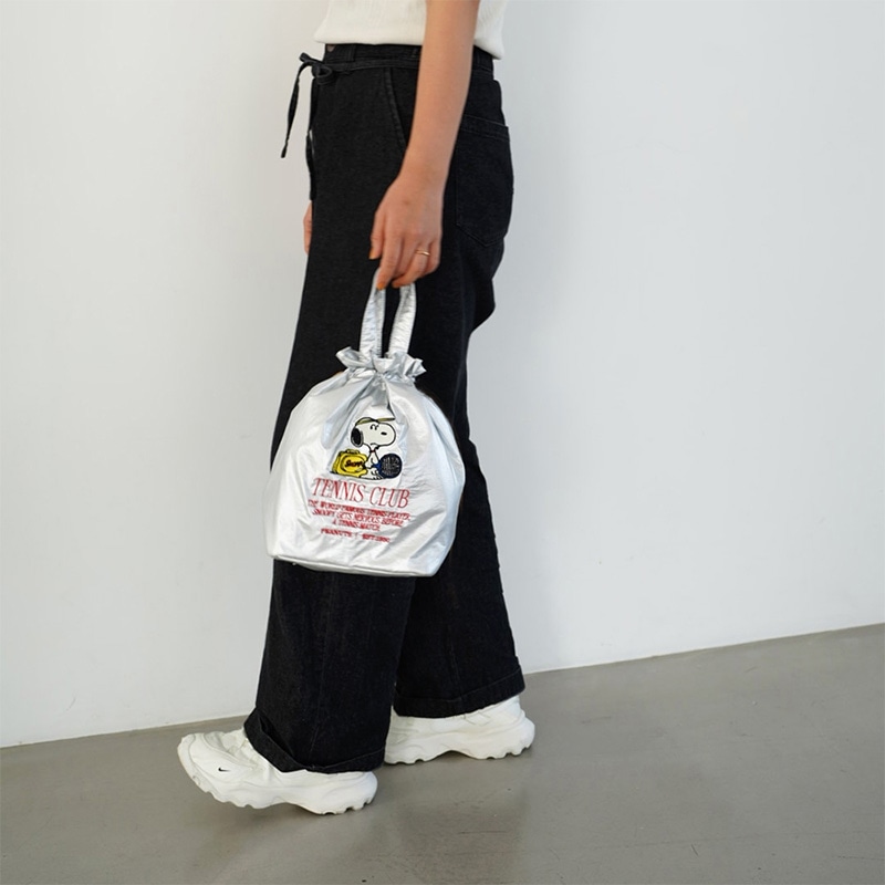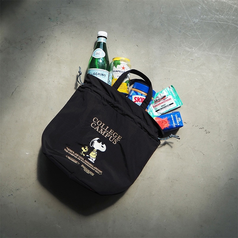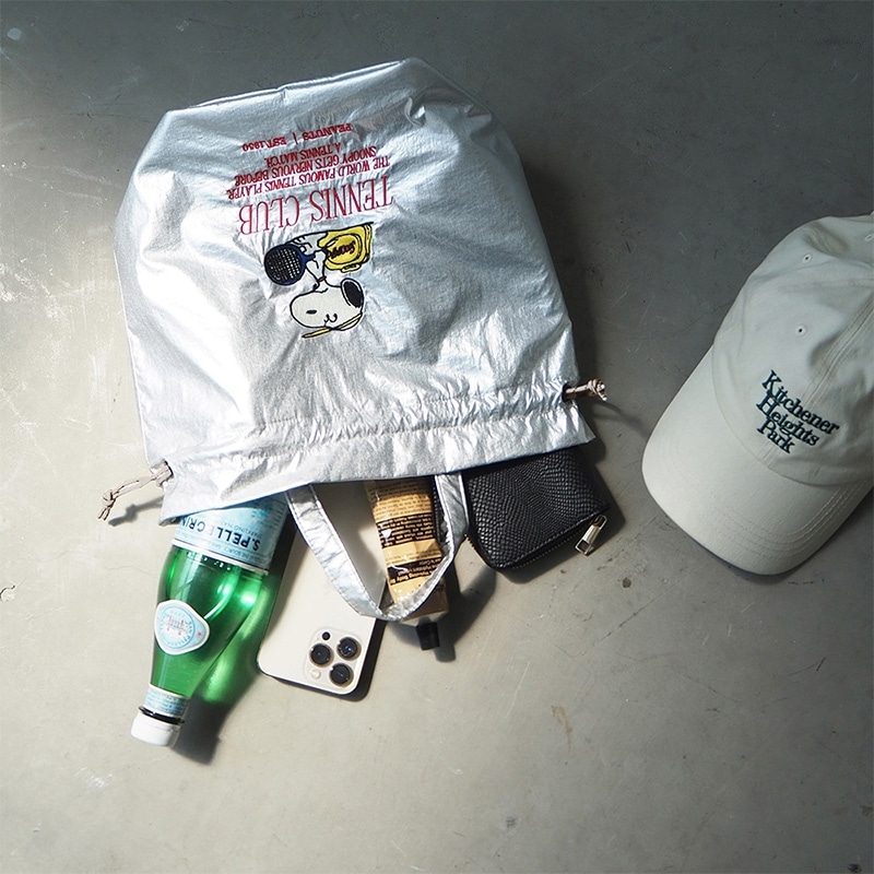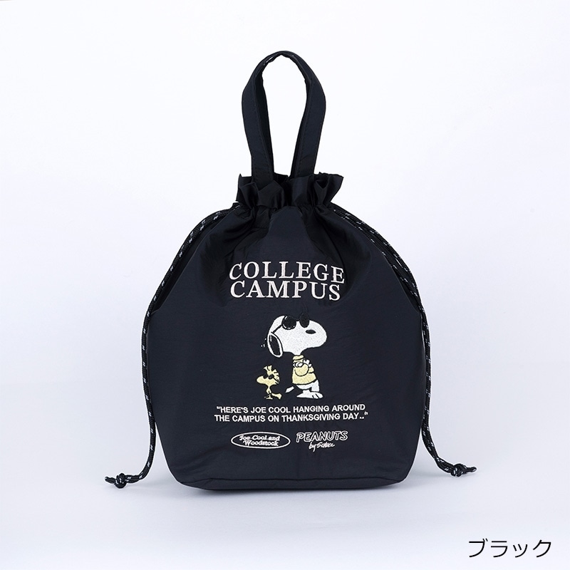 かわいいPEANUTSのキャラクター刺繍がデザインされた簡易保冷バッグです。入り口をキュッと絞れる、使いやすい巾着タイプ。500mlのボトルも入る実用的なサイズなので、ランチボックスやテイクアウトのパックやコンビニでのちょっとしたお買い物にも便利です。
