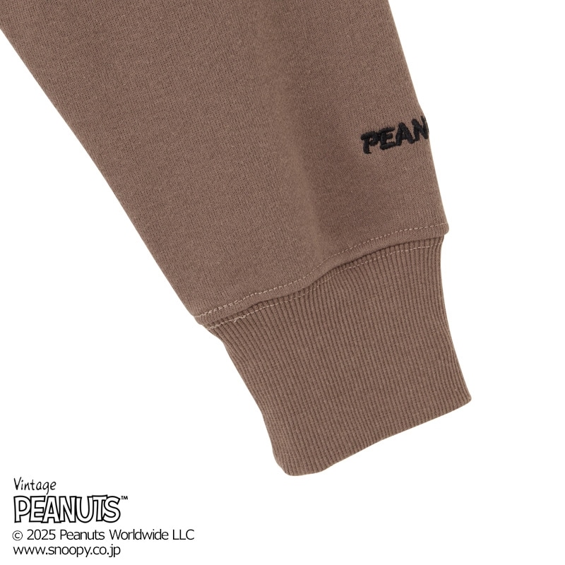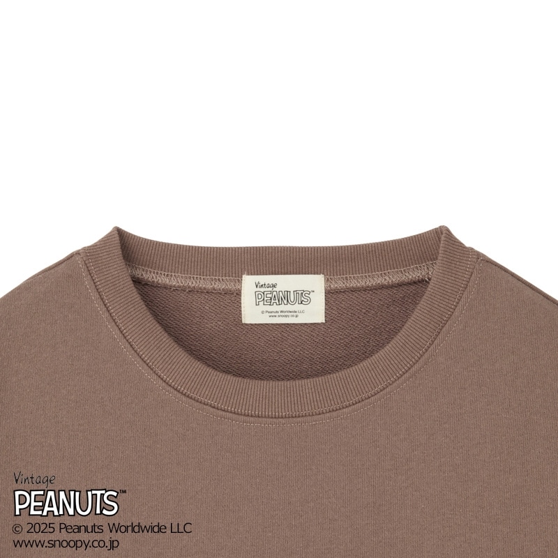 PLAZA限定!あたたかみのあるブラウンカラーと、バスケットボールを楽しむスヌーピーのレトロデザインがこなれ感たっぷり。程よい厚みで、季節の変わり目などにも大活躍してくれるスウェットです。フロントは起毛感のあるフロッキープリント、袖口のぷっくり刺しゅうなど、細部のディテールにこだわった1枚。着心地抜群で、ルームウエアにも最適です。
