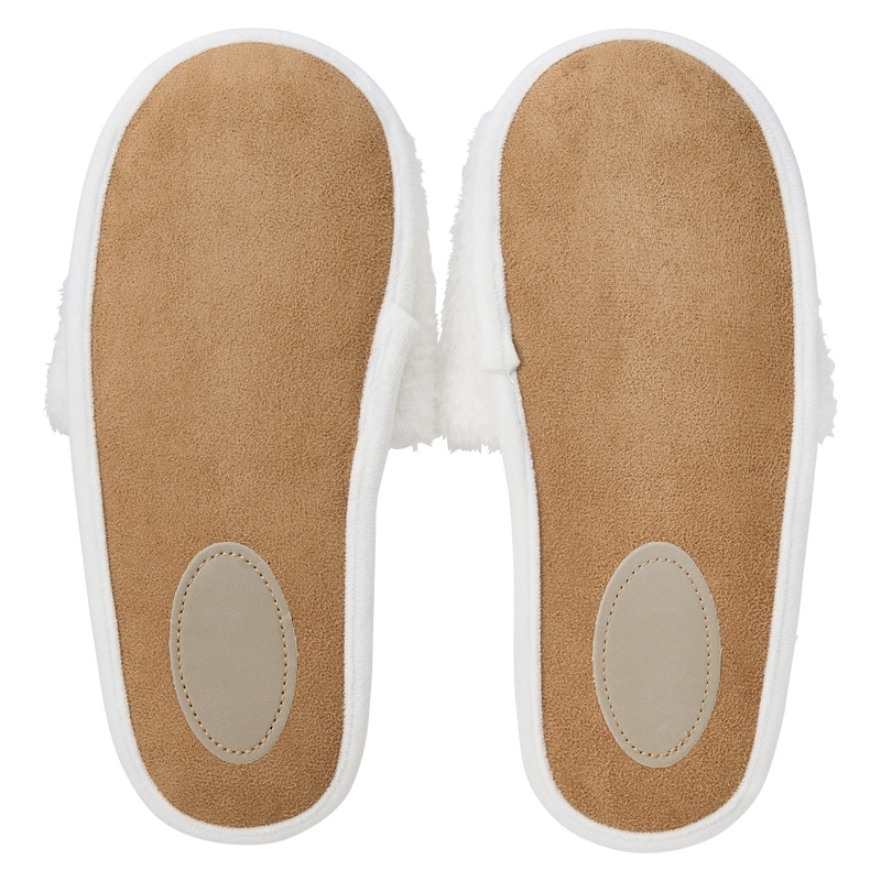 PLAZA・MINiPLA限定!つま先が空いたオープントゥタイプのスリッパ。もこもこ生地と刺繍のミッフィーのお顔がかわいいアイテムです♪つま先が空いたオープントゥタイプなので通気性も良く快適に過ごせます。