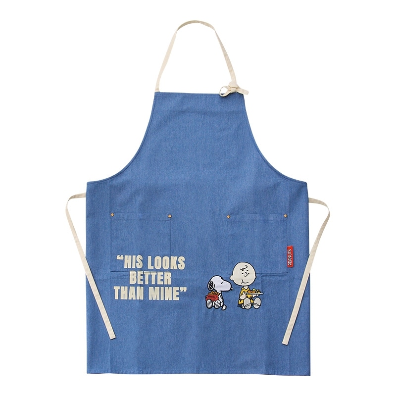 PLAZA限定!スヌーピーとチャーリーブラウンの刺しゅうがかわいい、デニム地のエプロンです。便利なポケット付きで実用性もばっちり!毎日の料理や家事を楽しくしてくれるギフトにもぴったりのアイテムです。