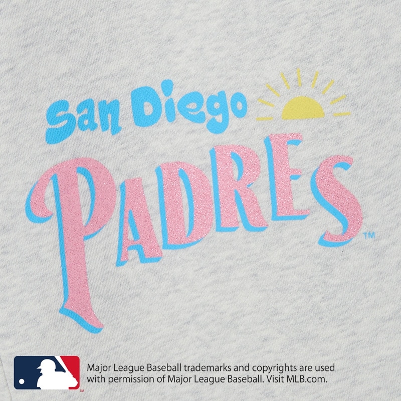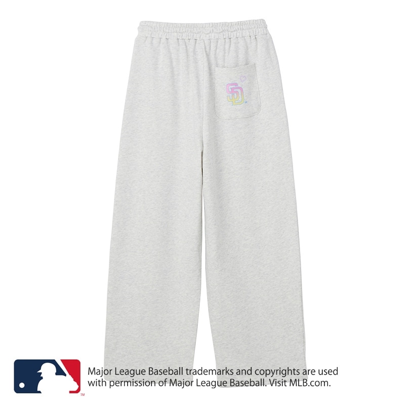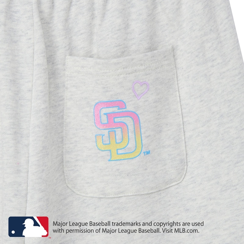 PLAZA限定!ニュアンスのある杢調カラーに、サンディエゴの太陽を思わせる明るい配色が印象的。フロントには太陽モチーフを組み合わせたラメカラーの「サンディエゴ・パドレス」のロゴをデザイン。バックポケットにはきれいなグラデーションカラーのロゴに、小さなハートをプラスしてキャッチーに仕上げています。トレンドのスポーティスタイルにぴったり。