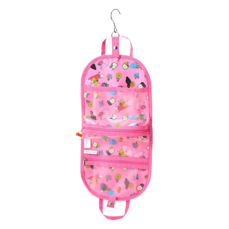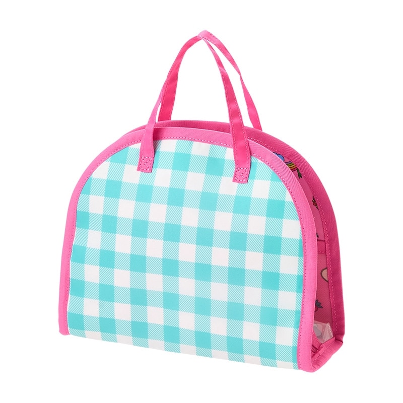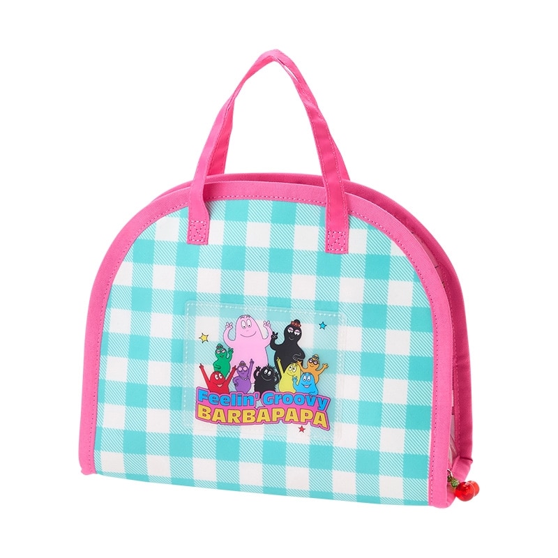 PLAZA限定!バーバパパファミリーとフルーツが一緒にデザインされたハンギングポーチです。さわやかなギンガムチェックのプリント生地にワッペンがポイント♪お気に入りのコスメや洗面用具などをたっぷり収納でき、開いたままフックで吊るせる便利な仕様。見た目の可愛さと実用性を兼ね備えた、旅のお供にぴったりのアイテムです。