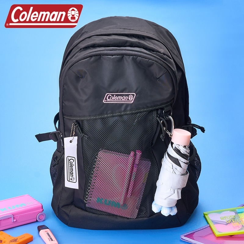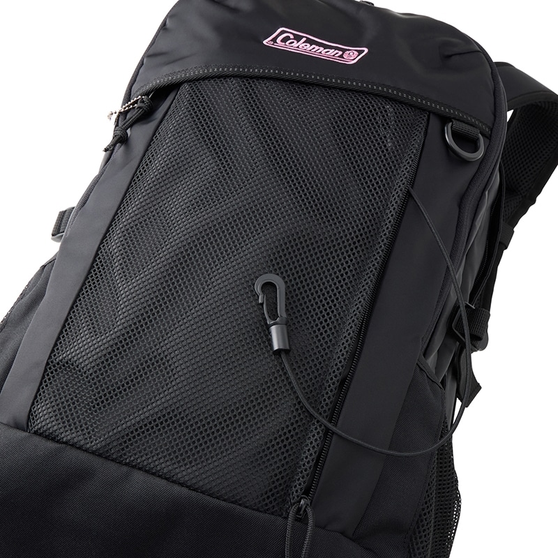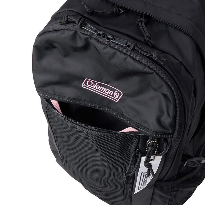 PLAZA限定!黒に映えるピンクがカワイイ「Coleman(コールマン)」のバックパックです。内ポケットにもピンクのパイピングを効かせてアクセントに。普段使いはもちろん、アウトドアや旅行にも使える大きめサイズ。たくさんのポケット付きで、フロントのメッシュポケットやフックなども充実しています。