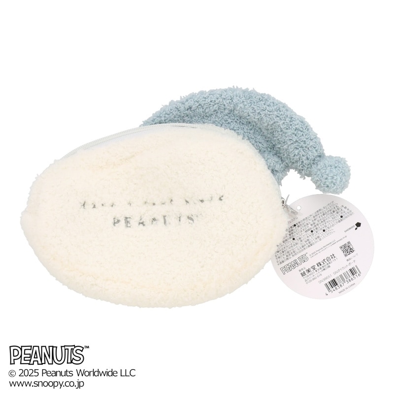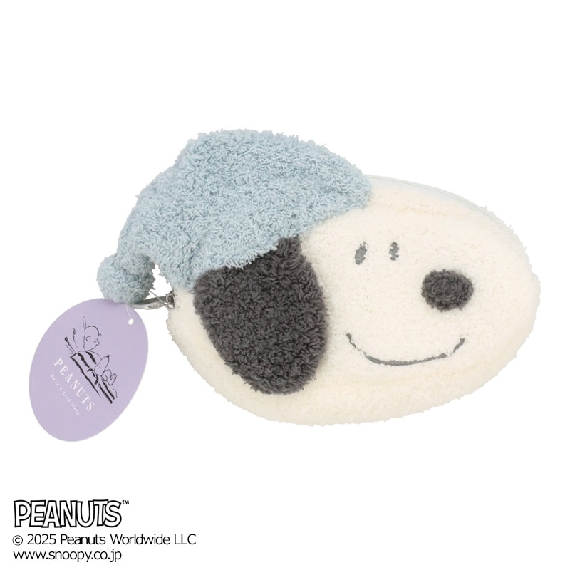 ナイトキャップを被ったスヌーピーのフェイスが印象的なダイカットポーチです。コスメや小物をまとめて入れられてバッグの整理にも役立ちます。デイリー使いにはもちろん、贈り物としてもおすすめです。