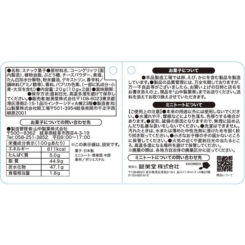 スヌーピーデザインのトートバッグにコーンスナックをセットした、可愛さたっぷりのアイテムです。お菓子を楽しんだ後は、バッグをちょっとしたお出かけやサブバッグとして使えるのも嬉しいポイント。実用性も兼ね備えたアイテムで、ギフトにもおすすめです。デザインは2種類からお選びいただけます。