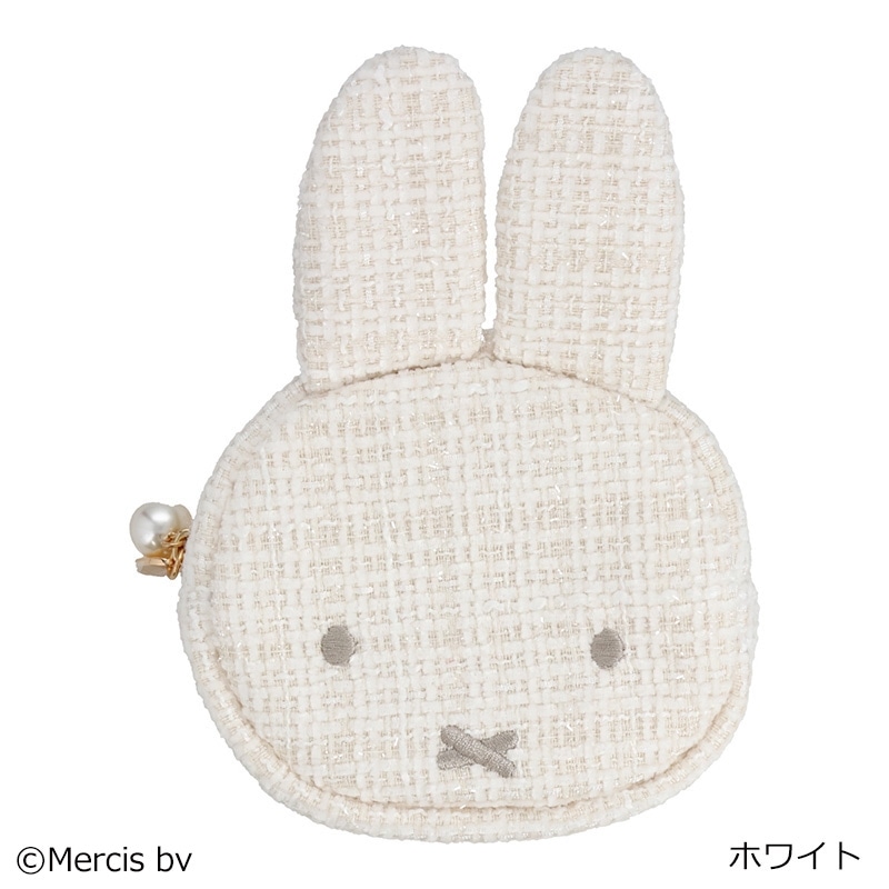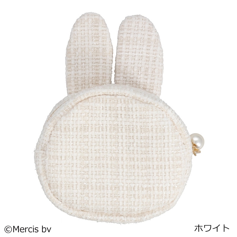 ミッフィーのお顔の形をしたダイカットポーチです。しっかりとしたマチがあるのが特徴で、コスメなどの小物を持ち運ぶのに便利なサイズです。シンプルでありながらツイード生地の温かみとクラシカルなパールが印象的◎ご自身用にはもちろん、贈り物としてもおすすめです。