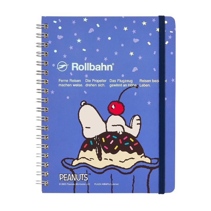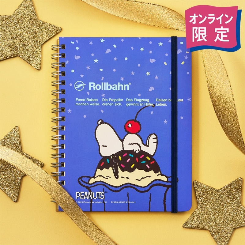 PLAZAオンラインストア限定!ロルバーンのリングノートの限定デザイン。チェリーとアイスの上で寝転ぶスヌーピーがとってもかわいい♪シンプルで飽きのこないデザインと使いやすさが一体となった5mm方眼ノート。全ページミシン目付きです。巻末にはクリアポケット付きでシールを入れたり、付箋を入れたりと色々な使い方ができます。