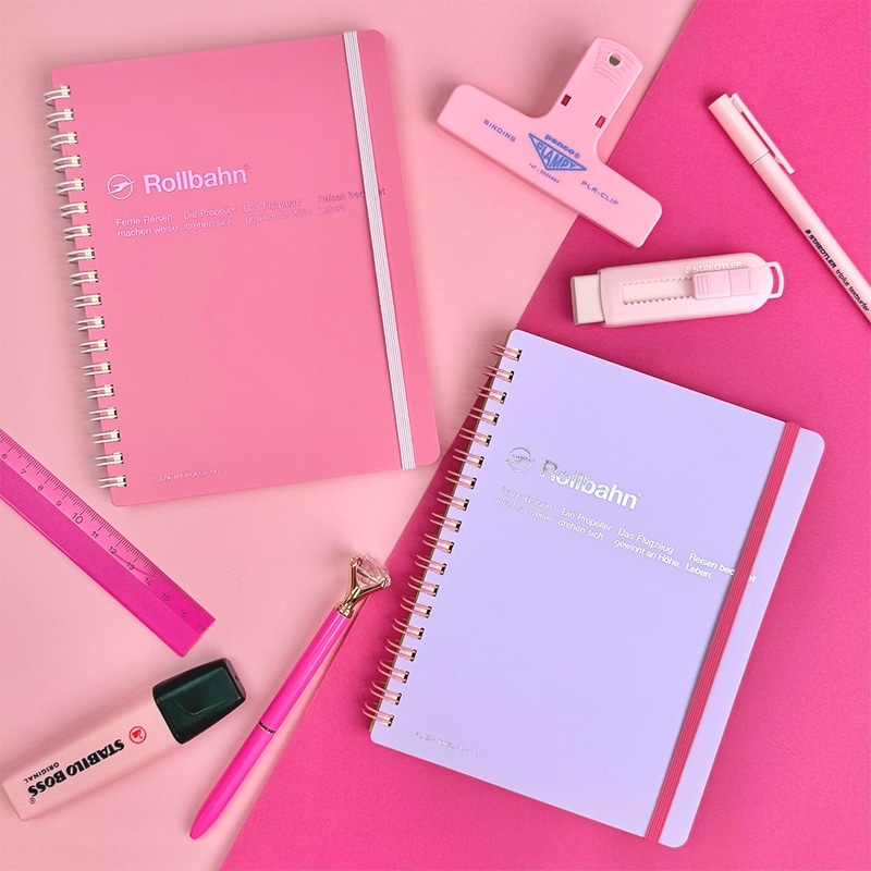 PLAZA限定!「Rollbahn(ロルバーン)」の5mm方眼ノート。カラフルな表紙にかわいいゴム色を合わせた限定デザインです。ゴムバンドが付いているのでバッグの中でページが開くこともなく、持ち歩きにぴったり。クリアポケット付きなのでメモやカードなどもまとめて入れられます。