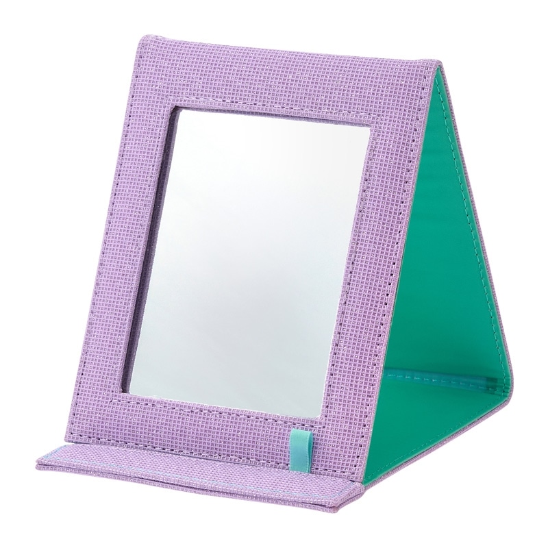 PLAZA・MINiPLA限定!ラメ感のある生地にホログラムのピクセルアートがキュートな折りたたみミラーです。スリムな三つ折りタイプで、内側に折りたためるので持ち運びの際も安心。外出先での身だしなみチェックや室内でのスキンケアの際にとても便利です。キラキラとしたデザインは遊び心があり、使うたびに気分を明るくしてくれます。